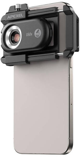 Objektív a telefonhoz 150x APEXEL APL-MS150 Az APEXEL APL-MS150 egy 150-szeres nagyítású makró objektum, amely lehetővé teszi a telefonos fotósok számára, hogy rendkívül részletességgel örökítsenek meg mikroszkopikus részleteket. Az objektív kiváló minőségű optikai üvegből készült, biztosítva a tiszta és éles képeket. Kompakt és könnyen csatlakoztatható, így ideális választás mind, mind haladó fotósok számára, akik a mobilfotózás során szeretnék bővíteni lehetőségeiket.