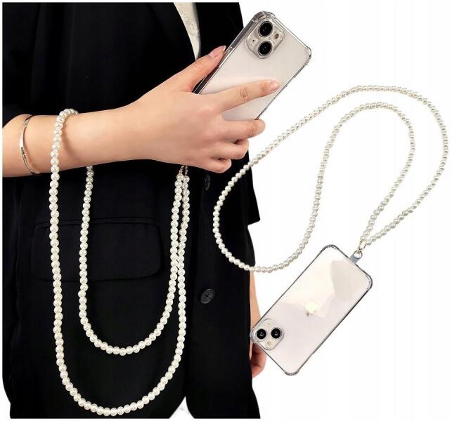 Nyakpánt telefonhoz, kulcsokhoz Fehér gyöngyök, elegáns, hosszú gyöngysorALLEGRO