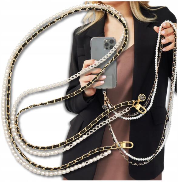 Nyakpánt/vállpánt telefonhoz, kulcsokhoz, gyöngyökkel, dupla, hosszú, fehérALLEGRO