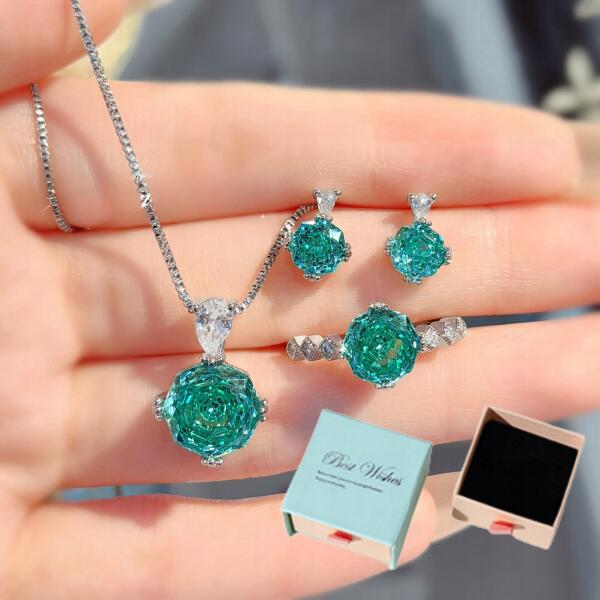 3 részes női ékszer szett, S925 ezüst, zöld, ajándékdoboz (E776)ALLEGRO