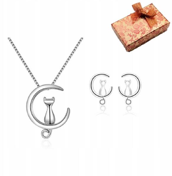 925-ös ezüst ékszerszett női ajándék szett díszdobozban (kot na księżycu)ALLEGRO