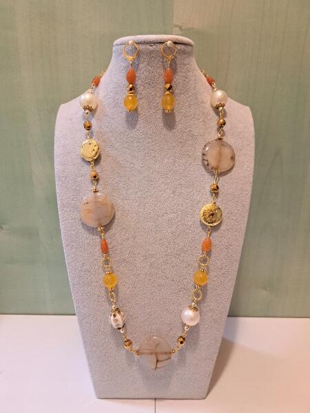 Elegáns ásványékszer szett, nyaklánc és fülbevaló (NES-063)