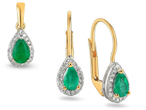 Gyémánt szett smaragdokkal 0.180 ct, modell IZBR100EMS