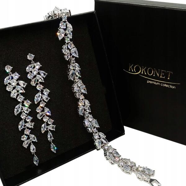 Kokonet Hosszú könnyű levél fülbevaló karkötő esküvőre lánybúcsú ajándék (8-0184 + 8-0072)