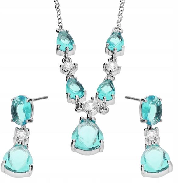 Lovrin 925-ös ezüst ékszerszett divatos türkizkék csepp nyaklánccal és fülbevalóval (Lovrin)ALLEGRO