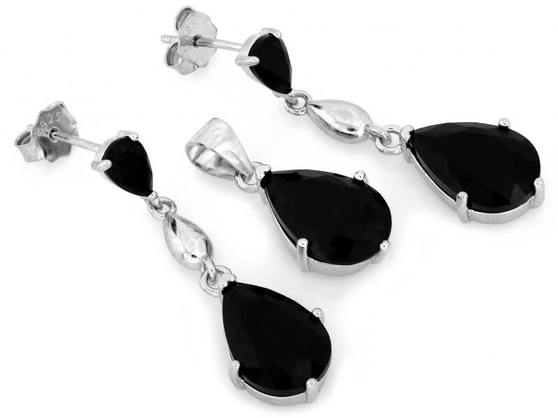 Lovrin 925-ös ezüst szett fekete ónix köves fülbevalóval és medállal, 4, 32g ajándék (62218108)ALLEGRO