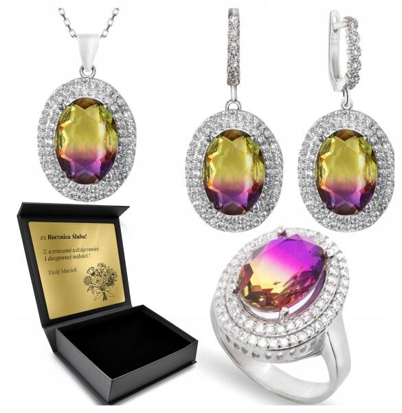 Ottomania 925-ÖS Ezüst Ékszerszett Ametrin Cirkóniákkal Nőknek Gravírozás (R057_17r)ALLEGRO