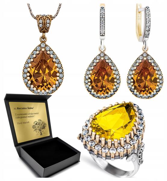 Ottomania 925-ÖS Ezüst Ékszerszett Cirkóniákkal És Citrommal Nőknek Gravírozás (R005_10r)ALLEGRO