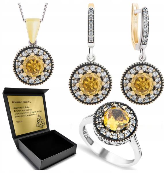 Ottomania 925-ÖS Ezüst Ékszerszett Cirkóniákkal És Citrommal Nőknek Gravírozás (R018_22r)ALLEGRO
