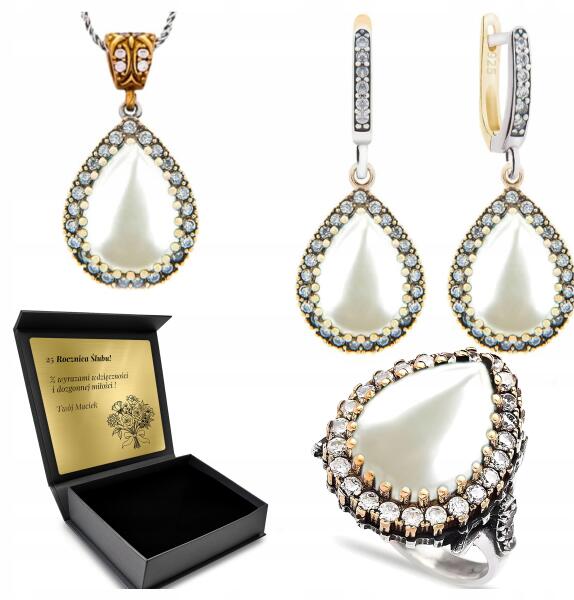 Ottomania 925-ÖS Ezüst Ékszerszett Cirkóniákkal És Gyöngyökkel Nőknek Gravírozás (R008_10r)ALLEGRO
