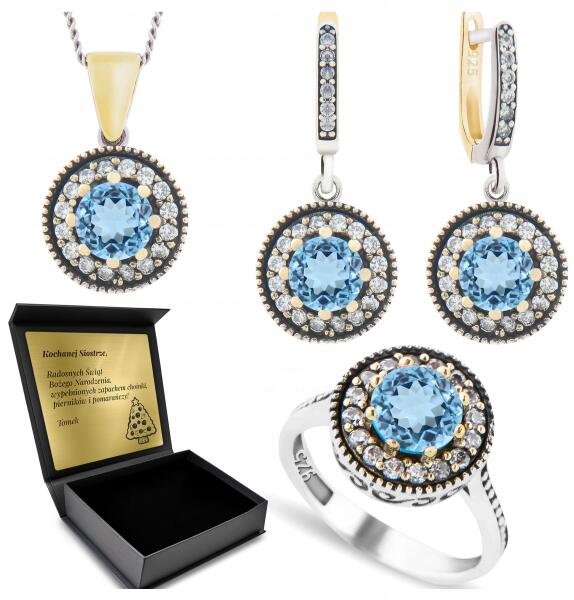 Ottomania 925-ÖS Ezüst Ékszerszett Cirkóniákkal És Kék Topázzal Gravírozás (R017_16r)ALLEGRO