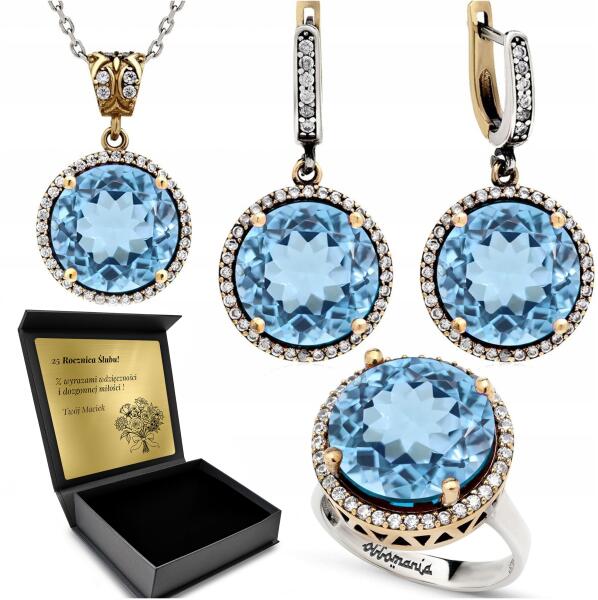Ottomania 925-ÖS Ezüst Ékszerszett Cirkóniákkal És Kék Topázzal Gravírozás (R027_16r)ALLEGRO