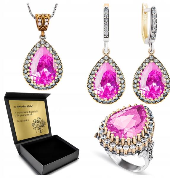 Ottomania 925-ÖS Ezüst Ékszerszett Cirkóniákkal És Rózsaszín Topázzal Gravírozás (R009_18r)ALLEGRO