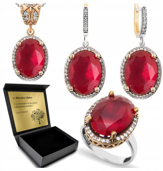Ottomania 925-ÖS Ezüst Ékszerszett Cirkóniákkal És Rubinnal Nőknek Gravírozás (R048_25r)ALLEGRO