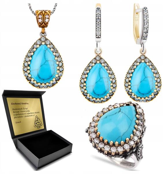 Ottomania 925-ÖS Ezüst Ékszerszett Cirkóniákkal És Türkizzel Nőknek Gravírozás (R013_10r)ALLEGRO