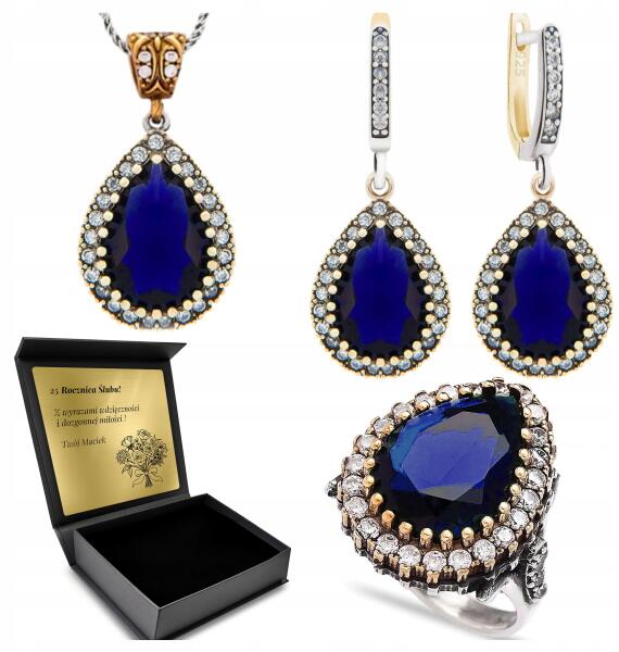 Ottomania 925-ÖS Ezüst Ékszerszett Cirkóniákkal És Zafírral Nőknek Gravírozás (R011_16r)ALLEGRO
