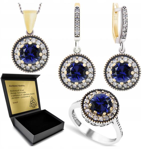 Ottomania 925-ÖS Ezüst Ékszerszett Cirkóniákkal És Zafírral Nőknek Gravírozás (R025_21r)ALLEGRO