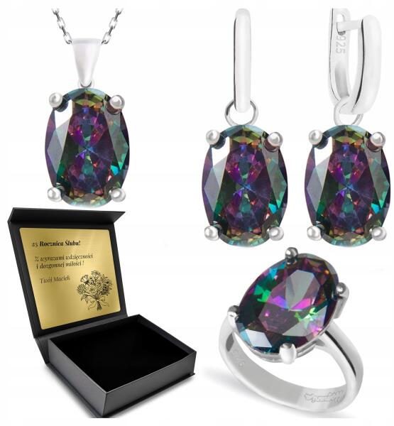 Ottomania 925-ÖS Ezüst Ékszerszett Misztikus Topázzal Szett Gravírozás Ajándék (R035_12r)ALLEGRO
