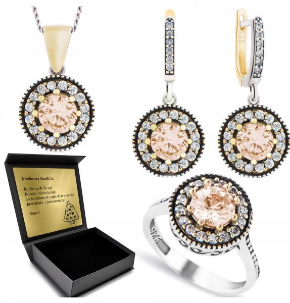 Ottomania 925-ÖS Ezüst Ékszerszett Morganit Cirkóniákkal Nőknek Gravírozás (R021_19r)ALLEGRO