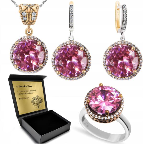 Ottomania 925-ÖS Ezüst Ékszerszett Rózsaszín Topáz Cirkóniákkal Gravírozás Ajándék (R031_14r)ALLEGRO