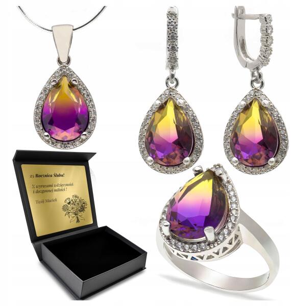 Ottomania Ezüst Ékszer Szett 925 Cirkónia Ametiszt Szett Nőknek Gravírozás (R067_12r)ALLEGRO