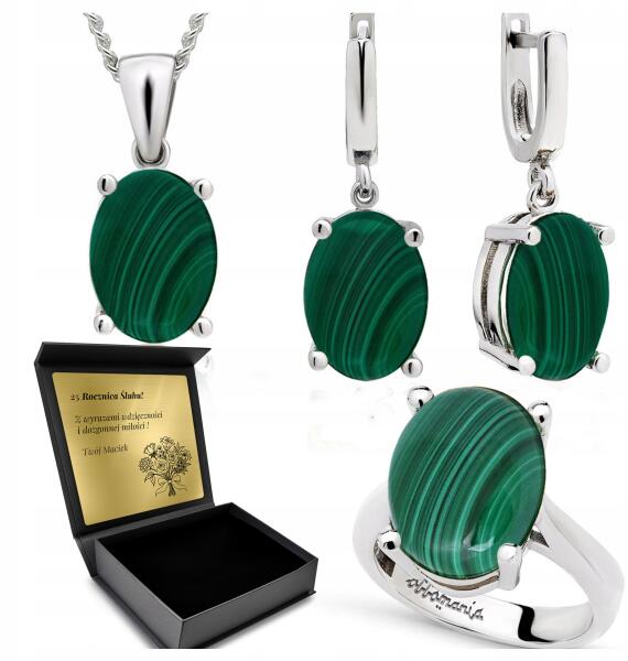 Ottomania Ezüst Ékszer Szett 925 Cirkónia Malachit Szett Női Gravírozás (R097_20r)ALLEGRO