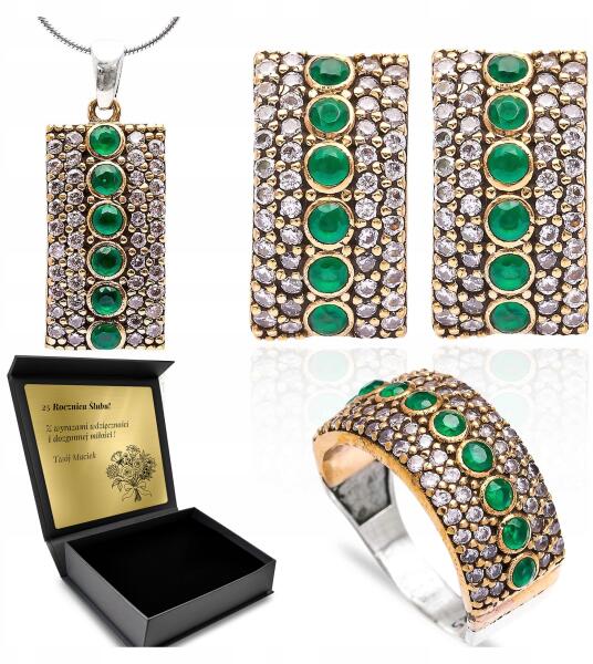 Ottomania Ezüst Ékszer Szett 925 Cirkónia Smaragd Női Gravírozás Szett (kpl-037_22r)ALLEGRO