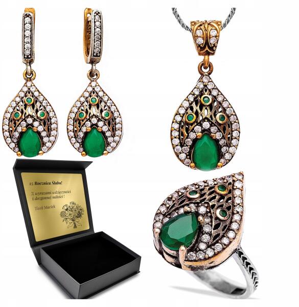 Ottomania Ezüst Ékszer Szett 925 Cirkónia Smaragd Női Gravírozás Szett (kpl-056_17r)ALLEGRO