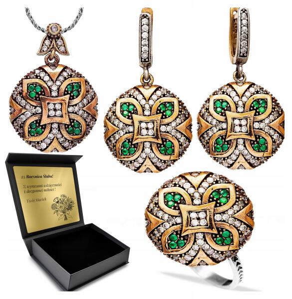 Ottomania Ezüst Ékszer Szett 925 Cirkónia Smaragd Női Gravírozás Szett (kpl-058_11r)ALLEGRO