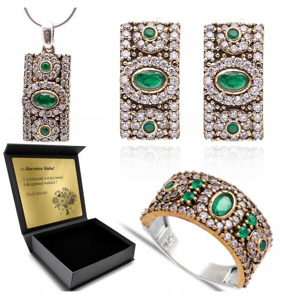 Ottomania Ezüst Ékszer Szett 925 Cirkónia Smaragd Női Gravírozás Szett (kpl-061_12r)ALLEGRO