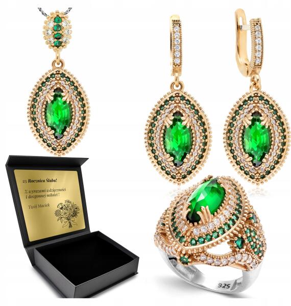 Ottomania Ezüst Ékszer Szett 925 Cirkónia Smaragd Női Gravírozás Szett (kpl-106_21r)ALLEGRO