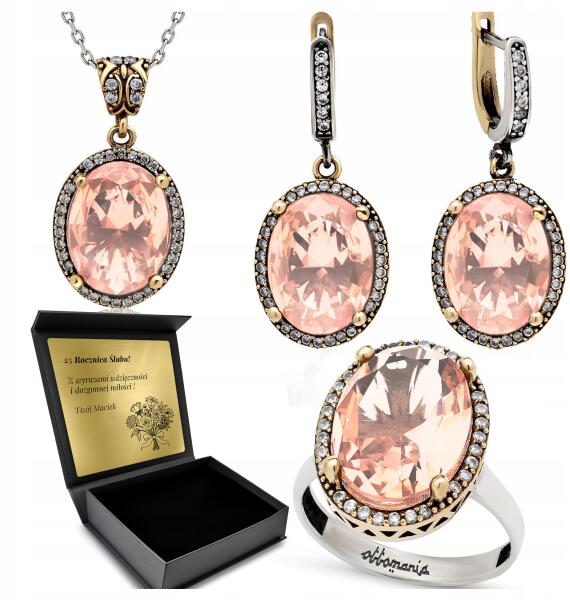 Ottomania Ezüst Ékszer Szett 925 Morganit Cirkónia Női Gravírozás Szett (R117_23r)ALLEGRO