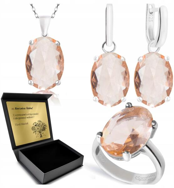 Ottomania Ezüst Ékszer Szett 925 Morganit Női Szett Gravírozás Ajándék (R087_11r)ALLEGRO