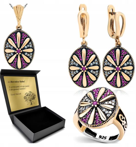 Ottomania Ezüst Ékszer Szett 925 Strassz Szett Nőknek Gravírozás Ajándék (kpl-143_17r)ALLEGRO