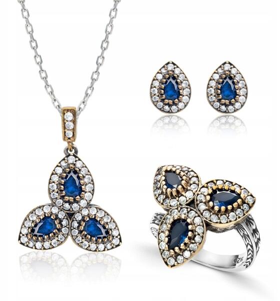 Ottomania Török Ékszer Szett Eredeti Virág Zafír Cirkóniákkal Gravírozás (kpl-097_19r)ALLEGRO