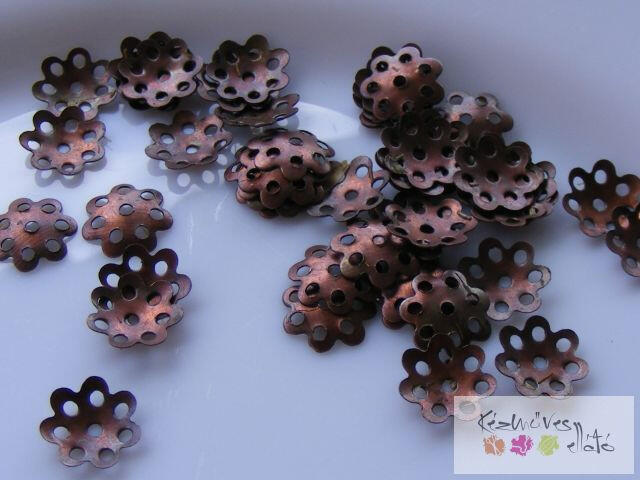 Áttört gyöngykupak szín: vörös bronz méret: 9 mm Az ár egy csomagra vonatkozik, amely 50 darab alkatrészt tartalmaz!