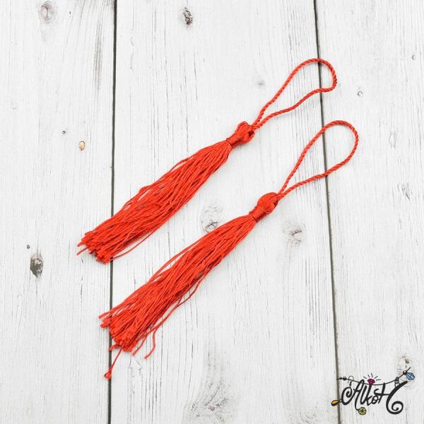 Piros színű selymes cérnából készült bojt.