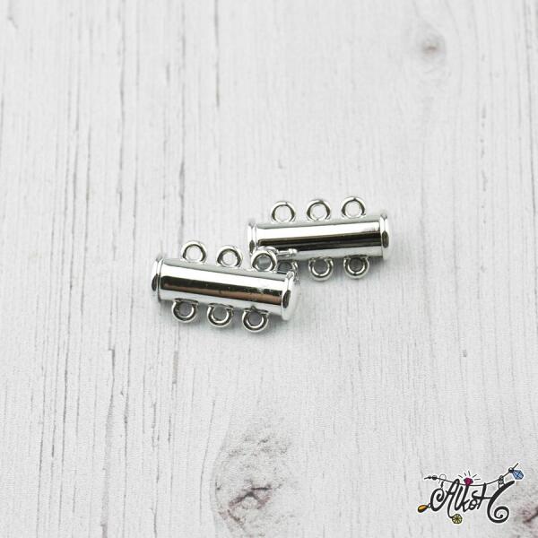 Platina színű mágneses csőkapocs, oldalanként 3-3 hurokkal.