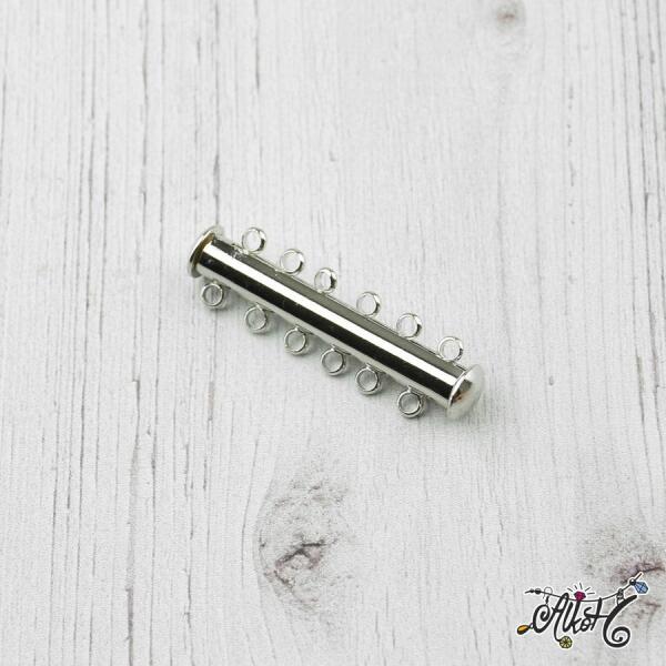 Platina színű mágneses csőkapocs, oldalanként 6-6 hurokkal.