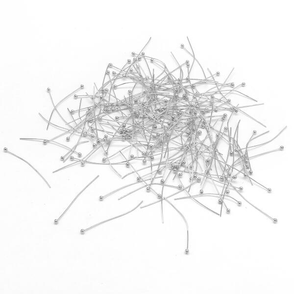 MIXFORM Golyóstű, sárgaréz, ezüst, 25x0.5mm, 2mm golyó, 100 db