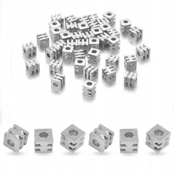 MIXFORM Gyöngy távtartó, sárgaréz, kocka, platina, 4x4x4mm, 50 db (13WB26668)