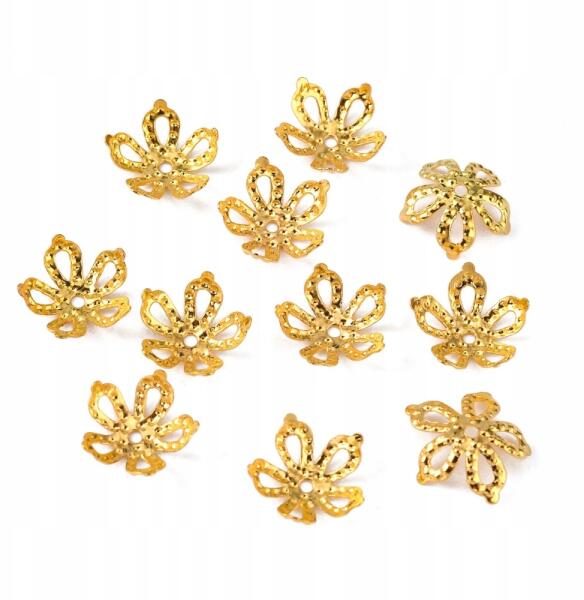 MIXFORM Gyöngykupak, Vas, Filigrán virágok, Arany, 8x3mm, 10g~160db (13WB30241)
