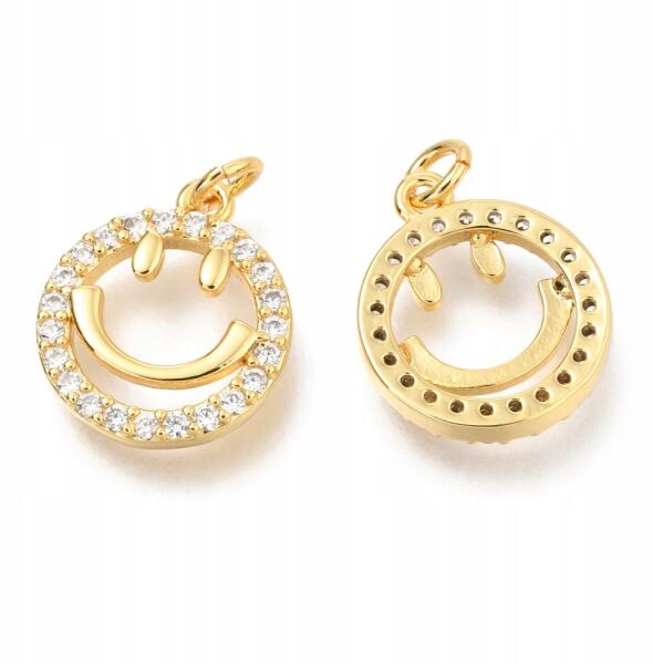 MIXFORM Medál sárgaréz cirkóniákkal, Mosolygós, 18K aranyozott, 13.8x11.8x2mm, 1db (13WB31015)