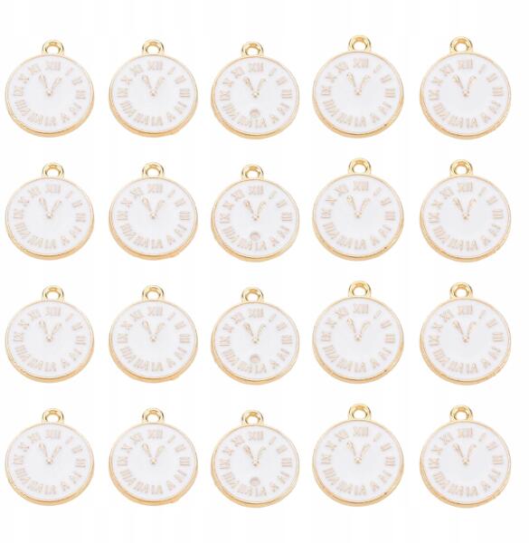 MIXFORM Medálok, Óra, Ötvözet és Zománc, Fehér, 17x14.5x1.5mm, 20db (13WB31923)