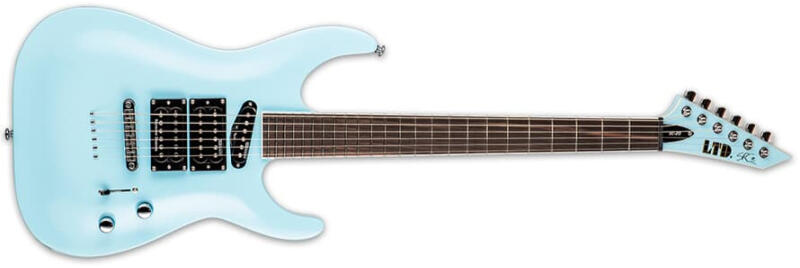 Termékleírás A LTD SC-20 a híres gitáros, Stephen Carpenter (Deftones) 20. évfordulóját ünnepli, hogy megszerezte első ESP Signature Series gitárját. Ez a hat húrra tervezett modell visszautal Stef korai ESP-s napjaira. A nyak-through test kialakítás lehetővé teszi a kiváló játékélményt, míg a Sonic Blue szín és a háromrészből készült nyárfa nyak kiemeli a dizájnt. A Macassar ében fogólap világító oldaljelzőkkel rendelkezik, amely különleges megjelenést kölcsönöz a hangszernek. Emellett a Seymour Duncan JB pickup és az ESP Designed LH-150N és LS-120N pickupok biztosítják a gazdag hangzást. Az összes elem, beleértve a TonePros zárható TOM hidat és az LTD zárható hangolók, a legmagasabb minőséget képviselik. Specifikációk
