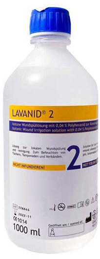 LEÍRÁS: A LAVANID 1 és a LAVANID 2 a Ringer-oldaton alapuló steril, izotóniás seböblítő oldatok, amelyek 0,02, illetve 0,04 polihexanid tartósítószert tartalmaznak. A polihexanid megakadályozza a mikroorganizmusok elszaporodását a kötszerekben és az oldatban. ÖSSZETÉTEL: Ringer-oldat (nátrium-klorid, kálium-klorid, kalcium-klorid 2 H2O és injekcióhoz való víz felhasználásával készült izotóniás elektrolitoldat), makrogol, 0,02 polihexanid (LAVANID 1), ill. 0,04 polihexanid (LAVANID 2). JAVALLATOK: helyi seböblítésre és sebtisztításra törlők, tamponok és kötszerek átitatására szolgáló oldat ELLENJAVALLATOK: Ne használja a LAVANID seböblítő oldatot a központi idegrendszer teljes területén (beleértve az agyhártyát) a porcok és ízületek területén a közép- vagy belső fülben intraperitoneálisan valamelyik összetevővel szembeni ismert túlérzékenység esetén terhesség és szoptatás ideje alatt KÜLÖNLEGES FIGYELMEZTETÉSEK ÉS AZ ALKALMAZÁSSAL KAPCSOLATOS ÓVINTÉZKEDÉSEK: Kizárólag tiszta oldatot szabad használni! Nem keverhető adalékanyagokkal. Ne sterilizálja újra! Az újrasterilizálás kritikus mértékben megváltoztathatja a termék felhasználhatóságát. A záródugó lehetővé teszi az öblítőoldat aszeptikus kinyerését, pl. egy spike (tüske) segítségével. Alternatív megoldásként a csavaros kupak eltávolítható, és az oldat kiönthető.   GYÓGYSZERKÖLCSÖNHATÁSOK: Más sebkezelő termékekkel való együttes használat esetén ellenőrizni kell a termékek használati utasítását a LAVANID összetevőivel való esetleges kölcsönhatások ellenőrzése érdekében. A polihexanid összetevő bizonyos gyógyszerekkel szembeni inkompatibilitásából fakadóan ne használja a LAVANID oldatot anionos anyagokkal (pl. anionos felületaktív anyagokkal vagy anionos gélképzőkkel). A povidon-jódot tartalmazó készítményekkel végzett preoperatív bőrfertőtlenítés után a LAVANID intraoperatív öblítésre használható. Kerülje a povidon-jodid és a LAVANID öblítőoldat közvetlen érintkezését a seb felületén. MELLÉKHATÁSOKA polihexanid összetevő allergiás reakciót válthat ki. Egyes esetekben az immunrendszer akut reakcióiról (anafilaxiás reakciókról) is beszámoltak. A felhasználókat és/vagy a pácienseket kérjük, hogy a termék használatával összefüggésben fellépő valamennyi súlyos eseményt jelentsék a gyártónak és az illetékes hatóságoknak. AZ ADAGOLÁSRA VONATKOZÓ TUDNIVALÓK, A HASZNÁLAT MÓDJA ÉS IDŐTARTAMA: Seböblítésre műtéti beavatkozások alatt, illetve öblítést vagy nedvesítést igénylő diagnosztikai és terápiás eljárások során. A SZAVATOSSÁGRA VONATKOZÓ INFORMÁCIÓK: A lejárati dátum a címkén található. A lejárati dátum után ne használja fel! Felbontás után minőségét megőrzi: 2 hónap. AZ ÁRTALMATLANÍTÁSRA VONATKOZÓ INFORMÁCIÓK: A fel nem használt termékek vagy hulladékok ártalmatlanítását a vonatkozó nemzeti előírásoknak megfelelően kell végrehajtani. Forgalmazó: Izinta Kft. 1121 Budapest, Konkoly Thege Miklós út 29-33. 1121 Budapest, Konkoly Thege Miklós út 29-33. info@izinta. hu; +36 1 392 2654 A szöveg ellenőrzésének dátuma: 2020. 10. Gyártó: Serag-Wiessner GmbH & Co. KG Zum Kugelfang 8-12. 95119 Naila / Germany