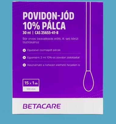 Tamponáljon a povidon-jóddal átitatott pálcával közvetlenül az alkalmazási területre. A kívánt bőrtisztító hatás eléréséhez az alkalmazási terület teljes felületét be kell itatni.