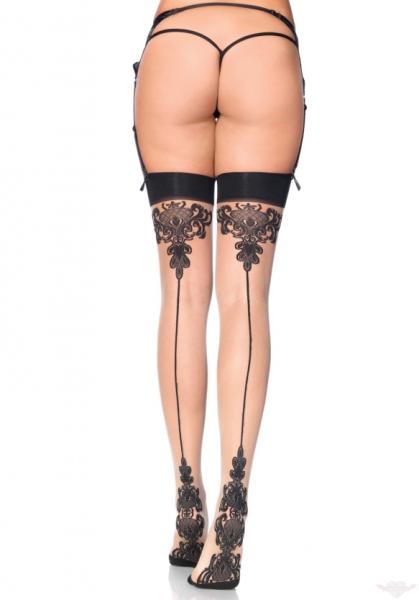 Leg Avenue Cuban Heel testszínű combfix harisnya hátul mintával S/L