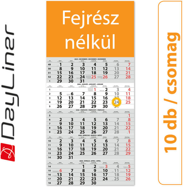 Dayliner SP15, 12 lapos 5 hónapos speditőr naptár - Fejrész nélkül, 10db/csomag