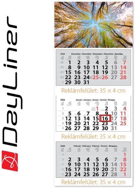 Dayliner Speditőr naptár 3 tömb, 3 hónap Maxi Classic 350 × 820 mm, fehér lapokkal Erdő Dayliner 2026 (DL6SP-3MACA-ER) - web24